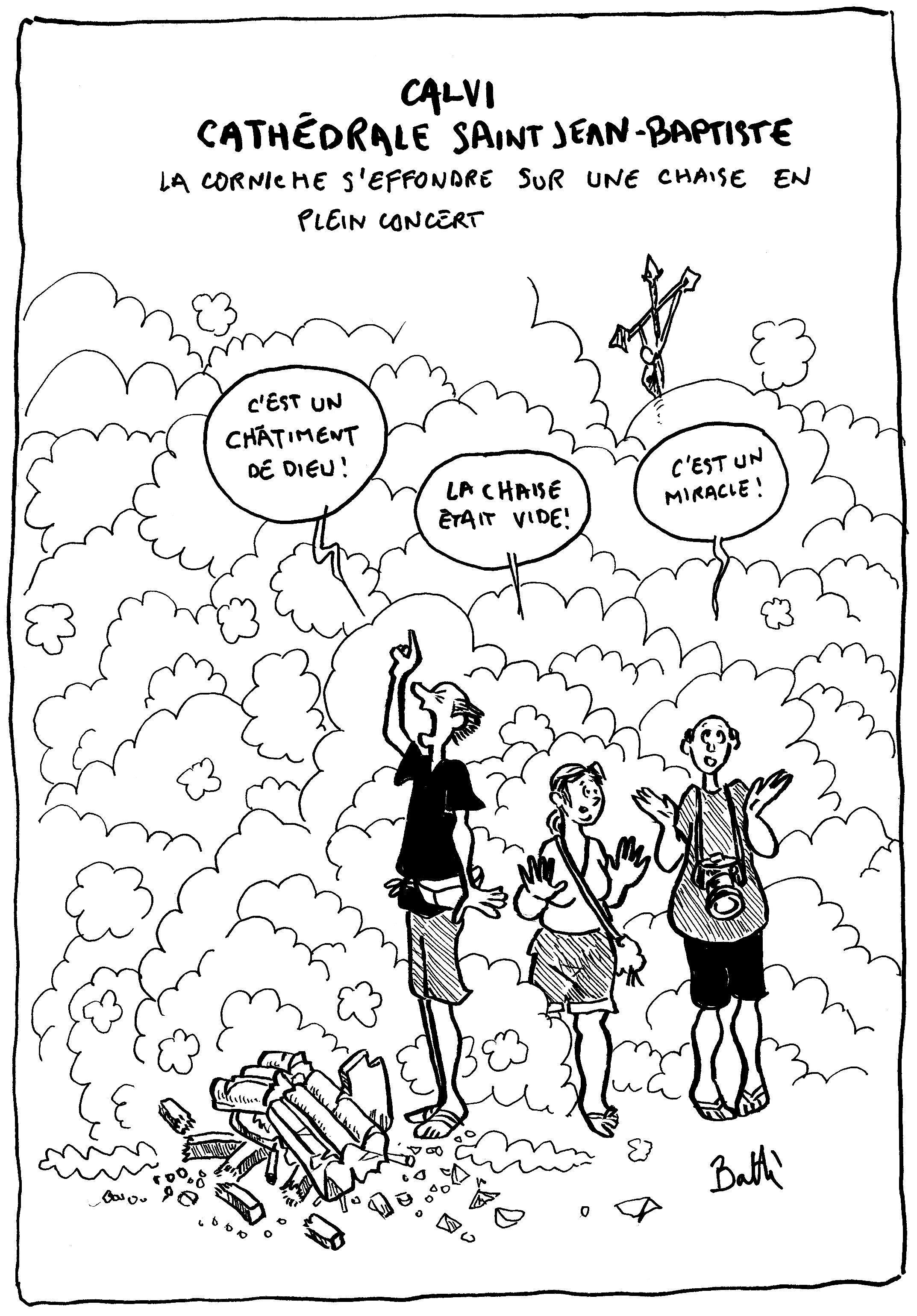 Un incident s’est produit jeudi soir à la cathédrale de Calvi en plein concert des Voix polyphoniques. Des morceaux de corniche se sont détachés et ont chuté sur des chaises, fort heureusement inoccupées. Aucun blessé n’est à déplorer, mais la frayeur a été grande parmi le public.