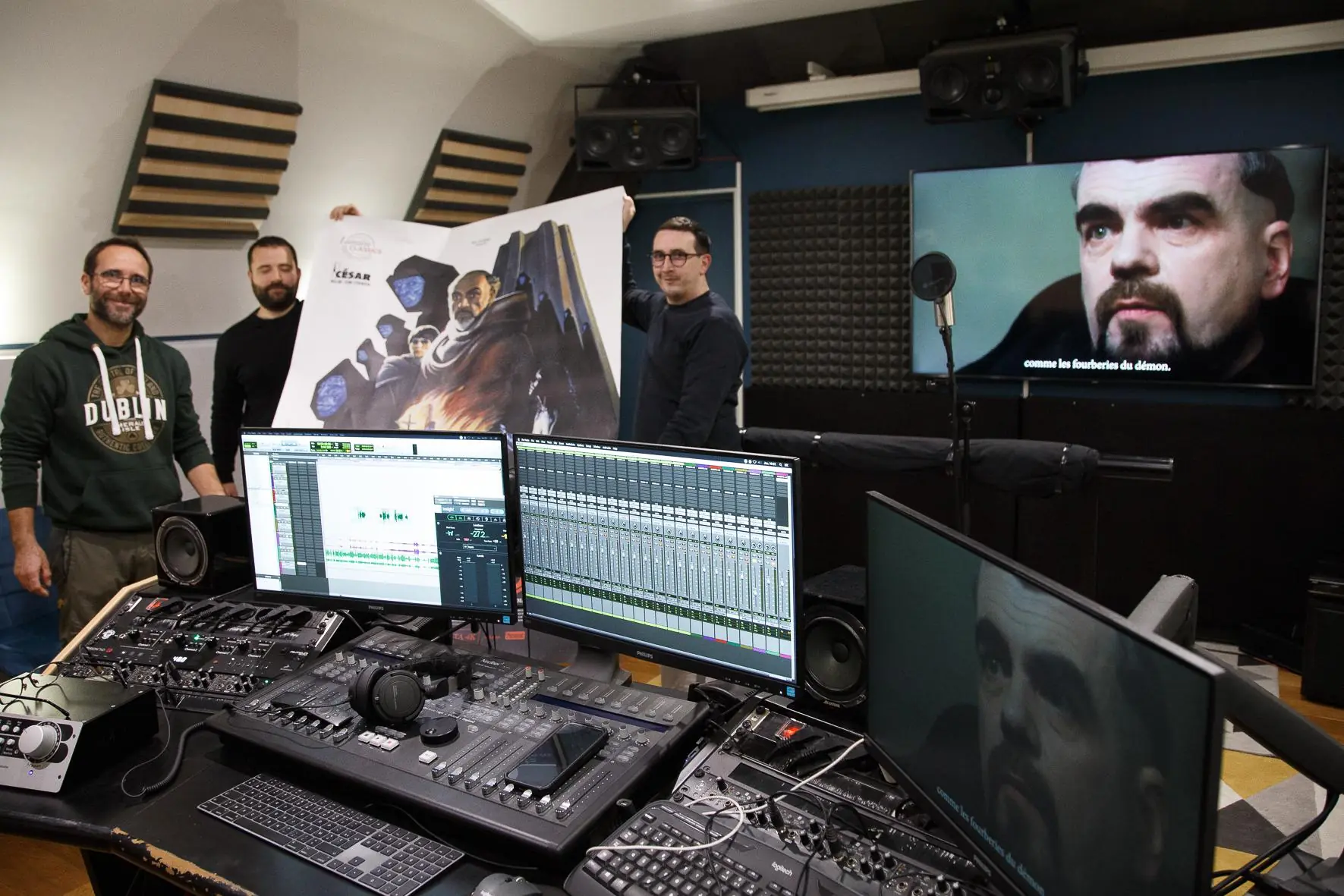 Créée en 2010, l’association Fiura Mossa adapte et traduit des films et séries en langue corse, et va présenter "U Nome di a Rosa", adaptation du film Le Nom de la Rose, ce samedi en avant-première au Régent à Bastia. L’objectif est de favoriser la transmission et la valorisation de la langue corse auprès de tous les publics, en particulier les plus jeunes. (Photos Gérard Baldocchi) Adapter des films et des séries en langue corse : c’est l’objectif de l’association Fiura Mossa depuis près de 16 ans. Créée en juillet 2010, l’association est née suite à un constat de l’enseignant Jean-Yves Casalta. « Il s’est aperçu que du doublage en langue régionale était fait en Bretagne, mais aussi chez les Occitans, depuis déjà une dizaine d'années », explique le président de l’association Sylvain Giannecchini. « Il m’a demandé si c’était faisable d’un point de vue technique, parce qu’il n'avait pas du tout d'approche technique, et je venais de…