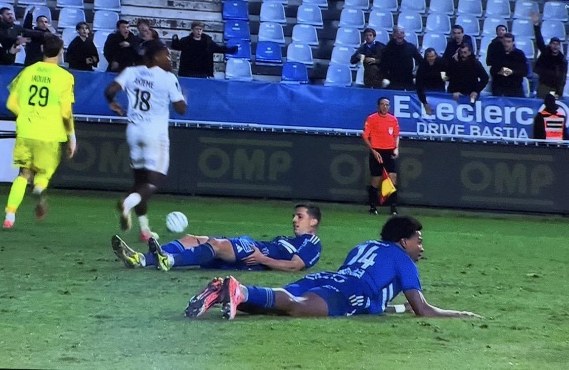 À l’image de cet enchaînement de cinq frappes bastiaises en l’espace de quelques secondes à la 76ᵉ minute, qui trouveront tour à tour le gardien, les défenseurs et même le poteau sur une tentative de Tom Meynadier. Le défenseur bastiais sortira finalement sur civière, remplacé par Nicolas Praviccini. À la 84ᵉ, Matteo Petrignani remplace à son tour, Zakaria Arris.