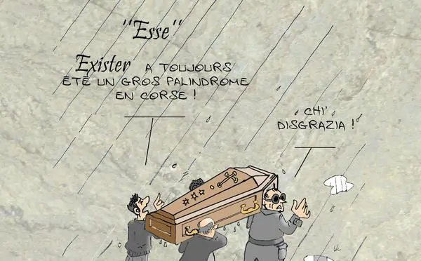 Être, exister : cela semble être devenu un véritable problème en Corse, à en juger par l’écart désormais structurel entre le nombre de naissances et celui des décès. Le regard sans détour de Battì. Le dessin est sobre, presque silencieux. Pourtant, le message est lourd. Avec cette illustration titrée « Démographie : plus de décès que de naissances », Battì met en image une réalité désormais bien installée en Corse : avec le nombre de morts, pas toujours naturelles qui se succèdent " à un rythme incontrôlable" comme le dirait Battì, le solde naturel est négatif. Sur le dessin, trois hommes portent un cercueil sous une pluie persistante. Ce cercueil ne représente pas seulement un mort. Il symbolise la Corse elle-même, ou plus précisément une société insulaire qui vieillit et se contracte. La marche est lente, pénible, entravée par l’eau. Rien ne presse, mais rien ne s’arrête non plus. Comme si l’issue était connue. Les mots choisis…