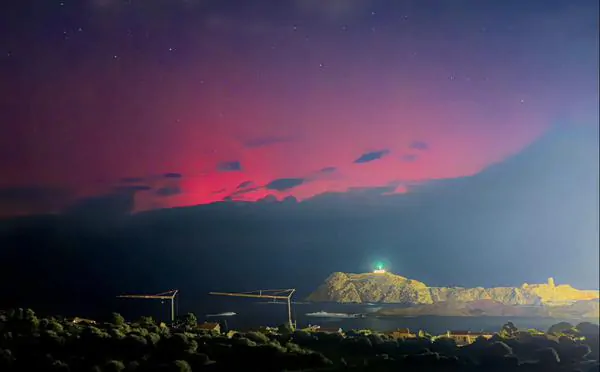 Une aurore boréale visible au-dessus de L’Île-Rousse, dans la nuit, phénomène exceptionnel sous ces latitudes. Le ciel s’est teinté de nuances rouges et violacées, conséquence d’une forte activité solaire interagissant avec le champ magnétique terrestre Si, comme Pierre Leoni, vous avez capturé un cliché, une photo que vous avez vous-même réalisée, mettant en valeur votre village ou un coin de Corse, partagez-le avec nous. Envoyez-le à l’adresse : corsenetinfos@gmail.com. Cliquez sur l’image pour en apprécier toute la beauté.