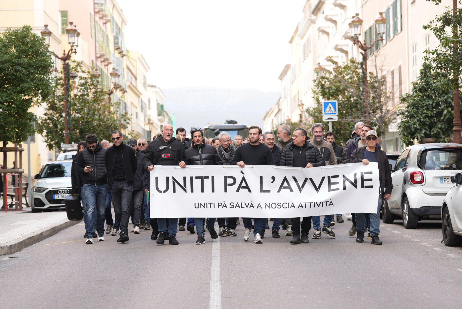 Ils souhaitent alerter sur « la crise économique sans précédent qui frappe aujourd’hui le secteur de la construction, et, au-delà, l’ensemble de l’économie productive corse ». Une crise, martèlent-ils, « immédiate, profonde et systémique » qui touche l’ensemble des secteurs, du bâtiment aux services, en passant par les travaux public, l’artisanat, le commerce, le tourisme, les transports ou encore le nautisme. Ce jeudi après-midi, le collectif Uniti pa l’avvene, organisait une manifestation à Ajaccio. À l’appel de cette association apolitique représentant les acteurs de la filière construction récemment créée « pour défendre les intérêts de l’économie de la Corse », ils étaient ainsi plus d’une centaine de représentants du secteur à remonter le cours Napoléon afin de demander « un plan d’urgence économique pour la Corse ».