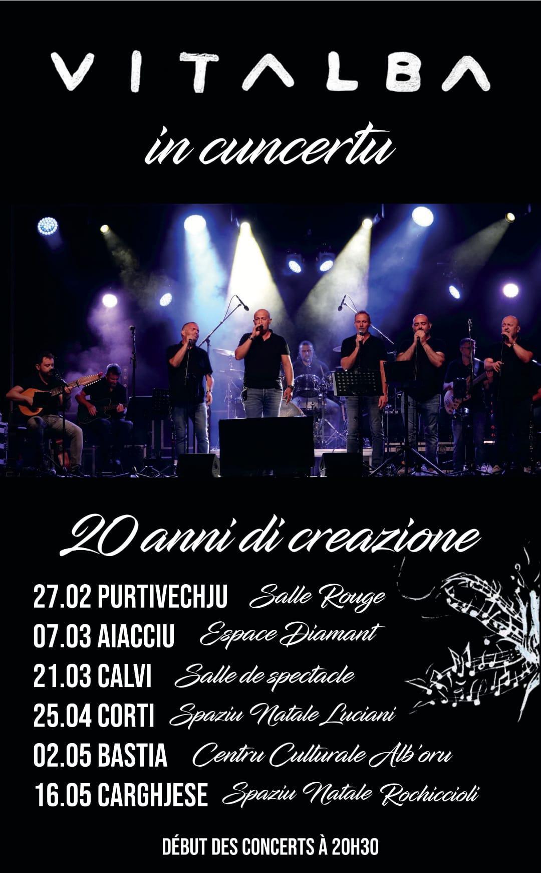 Groupe incontournable de la scène musicale corse, Vitalba s’apprête à prendre la route. À partir du 27 février prochain à Porto-Vecchio, ses membres entament une tournée anniversaire en autoproduction, qui les mèneront successivement à Ajaccio, Calvi, Corte, Bastia et Cargèse, jusqu’à la mi-mai. À cette occasion, Jean-Yves Acquaviva, membre historique et auteur du groupe, revient sur vingt ans de créations, mais aussi sur l’esprit qui anime encore Vitalba aujourd’hui.