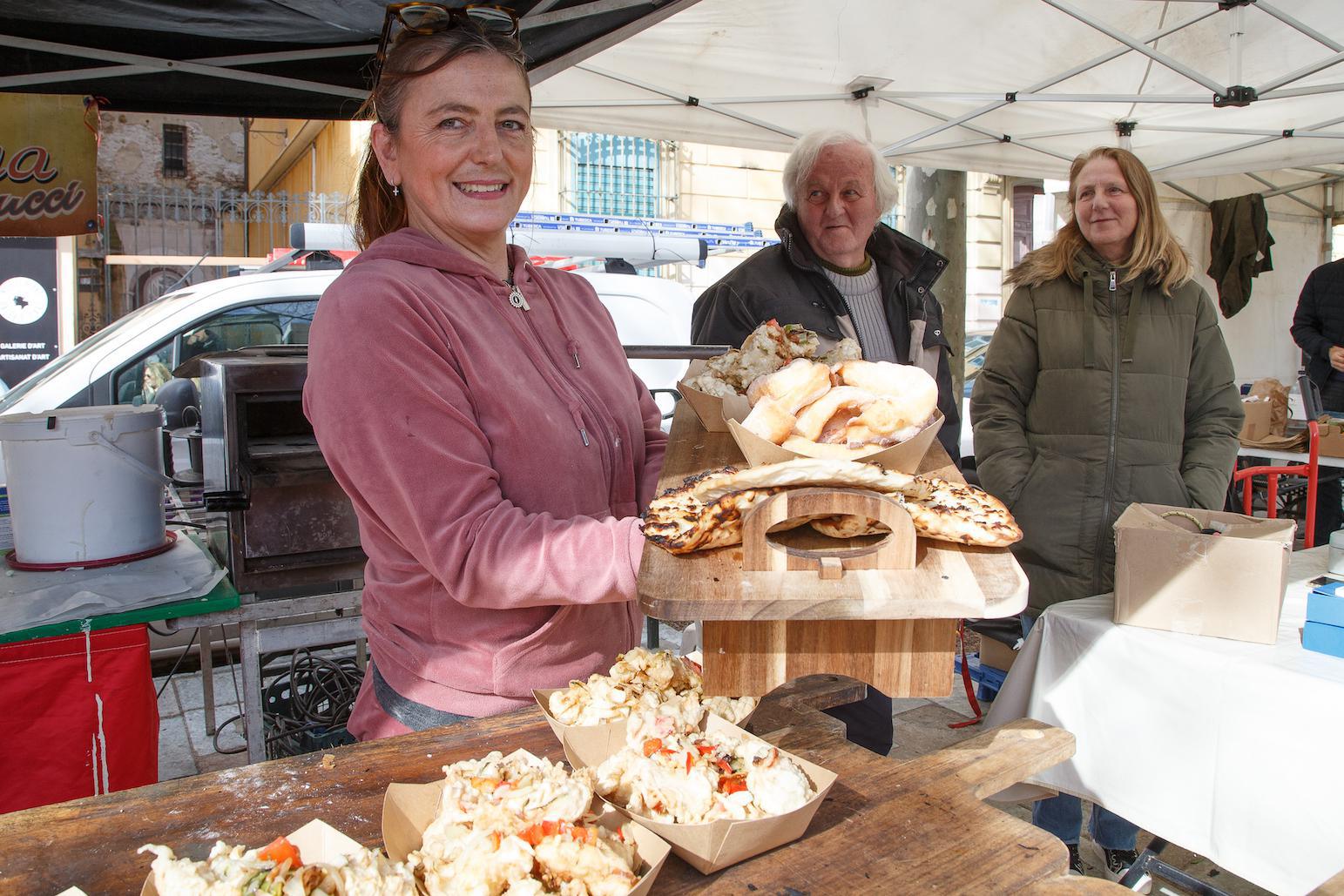 Mais lorsque la saison refroidit les ruelles et que la lumière se fait plus douce, le rendez-vous conserve une saveur particulière. Les étals, moins nombreux, privilégient les produits qui réchauffent : charcuterie artisanale, figatelli suspendus, brocciu, migliaccioli encore tièdes, fritelle au fromage dorées à souhait, frappe croustillantes. À côté, quelques bouteilles d’alcools du pays rappellent que l’hiver est aussi un temps de partage. Au-delà des produits, c’est une atmosphère qui persiste. Les conversations s’entrecroisent, les plaisanteries fusent, les nouvelles circulent plus vite que les sacs cabas. La magagna bastiaise, faite d’ironie, de commentaires bien sentis et de connivence, n’a jamais déserté les lieux. Elle continue d’habiter ce marché d’hiver, modeste mais vivant, où l’on vient autant pour acheter que pour se retrouver.