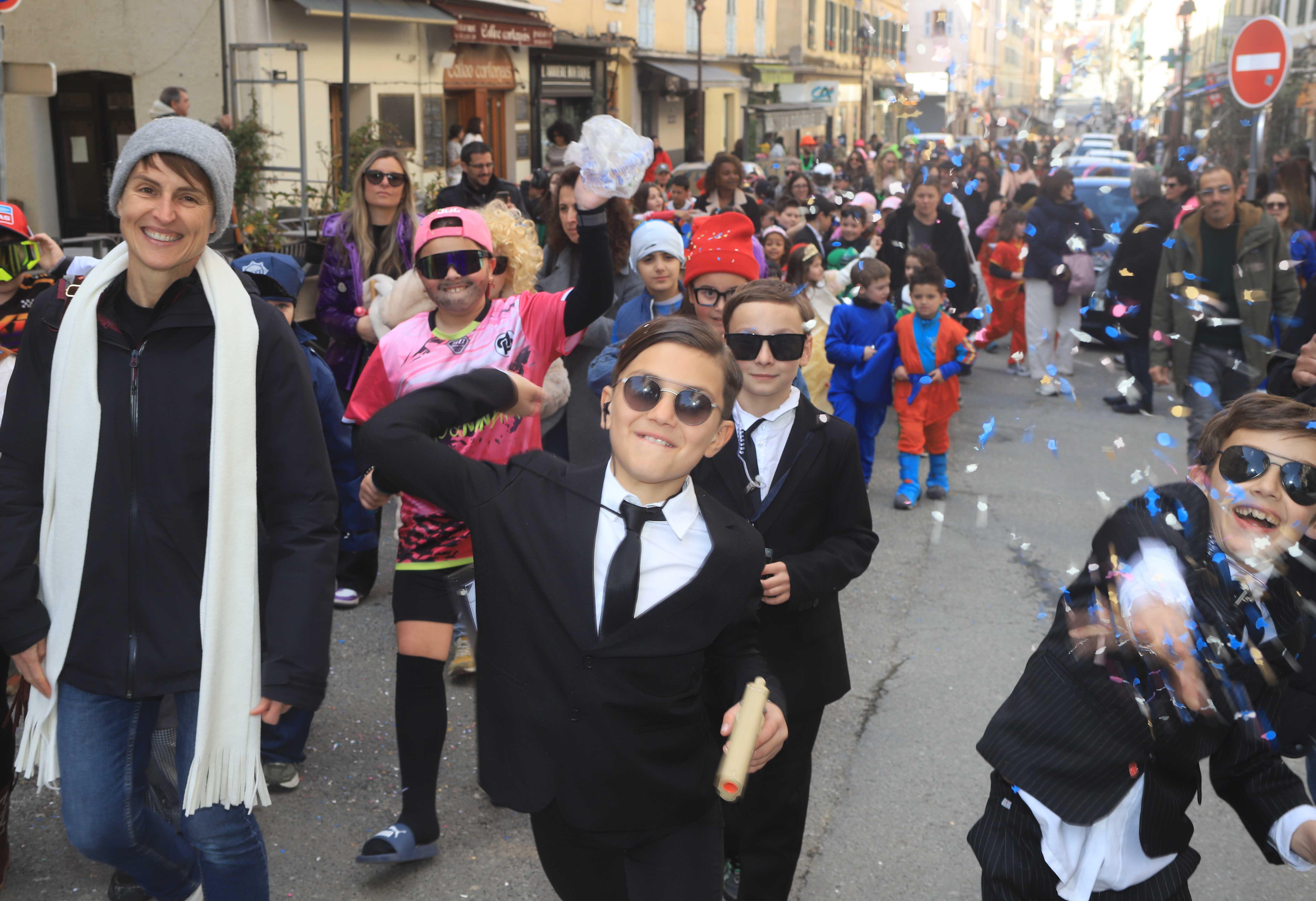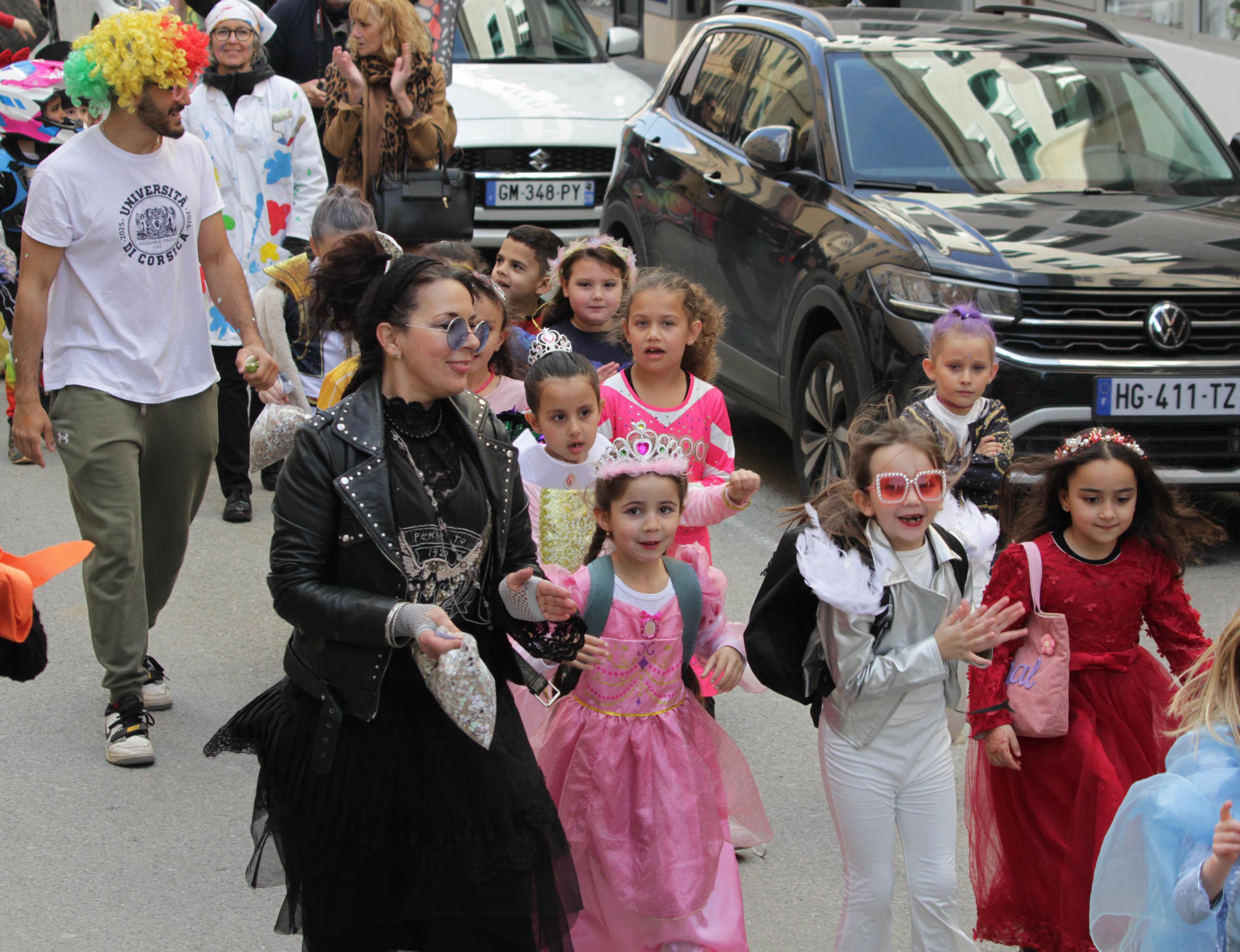 Partis à pied de l’école des Purette vers l’avenue Jean Nicoli, les enfants ont rejoint leurs camarades de Sandreschi à la hauteur du Pauvre Diable pour entamer leur parade. Ils remontaient le cours Paoli en direction de la place Paoli avant de descendre les Lubbiacce pour rejoindre l’avenue du Président Pierucci puis l’avenue Xavier Luciani avant d’emprunter une nouvelle fois le cours Paoli. La parade se terminait sur l’esplanade du parking Tuffelli où un immense goûter attendait la joyeuse troupe bigarrée. Un goûter et des boissons offerts par les parents qui se sont également mobilisés à cette occasion.