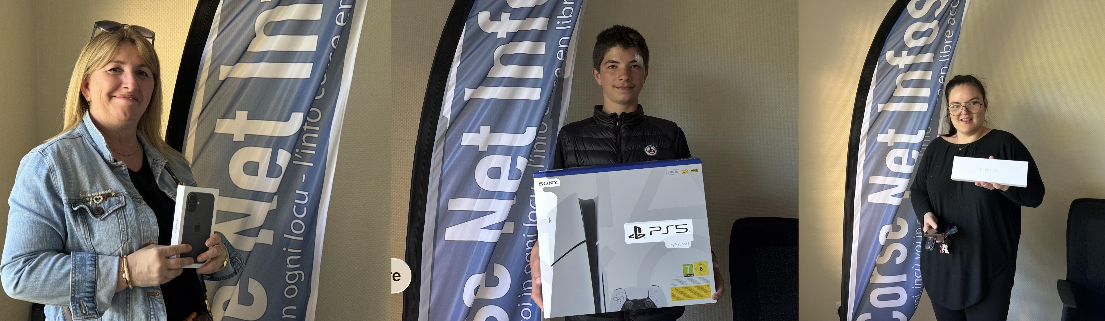 À l’occasion de ses 15 ans, Corse Net Infos avait lancé un jeu concours sur ses réseaux sociaux - Facebook, TikTok et Instagram - afin de remercier ses lecteurs et abonnés pour leur fidélité. Trois lots étaient en jeu : un iPhone 17, une PlayStation 5 et une Apple Watch.